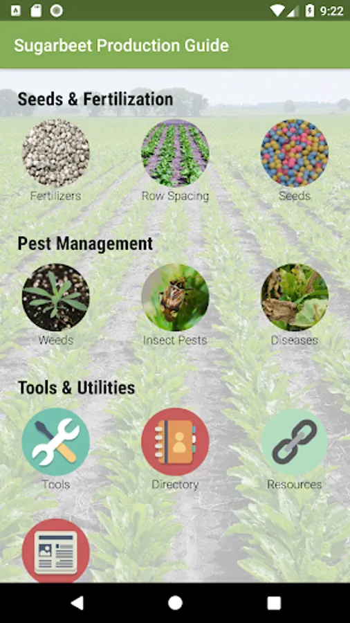 The Sugarbeet Production Guide provides useful information to assist North Dakota and Minnesota sugarbeet growers in making timely management decisions. The app brings critical information about sugarbeet cultivation, from seed to harvest at your fingertips.