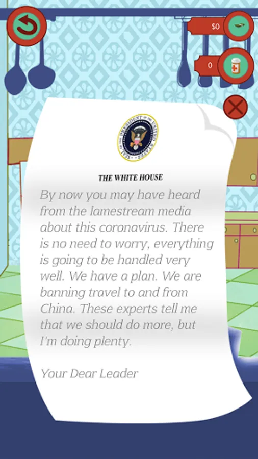To do this, we repurposed our game Unsavory, originally released in 2013. In the original game, you played as an employee of a fictitious fast food restaurant during the H1N1 outbreak, trying to survive a month on a budget suggested to workers at McDonalds’ from a consulting group at Visa. For the new release, we included letters from 4 sources that provide a timeline of where the country was at in terms of dealing with the pandemic of 2020. The first source is the Centers for Disease Control and Prevention (CDC). The second source is news from media outlets. The third source is tweets from the President of the United States. The last source is from the employer, Rocket Taco. The last source is completely fictitious but tries to capture the mood of a business dealing with uncertainty and trying to survive.