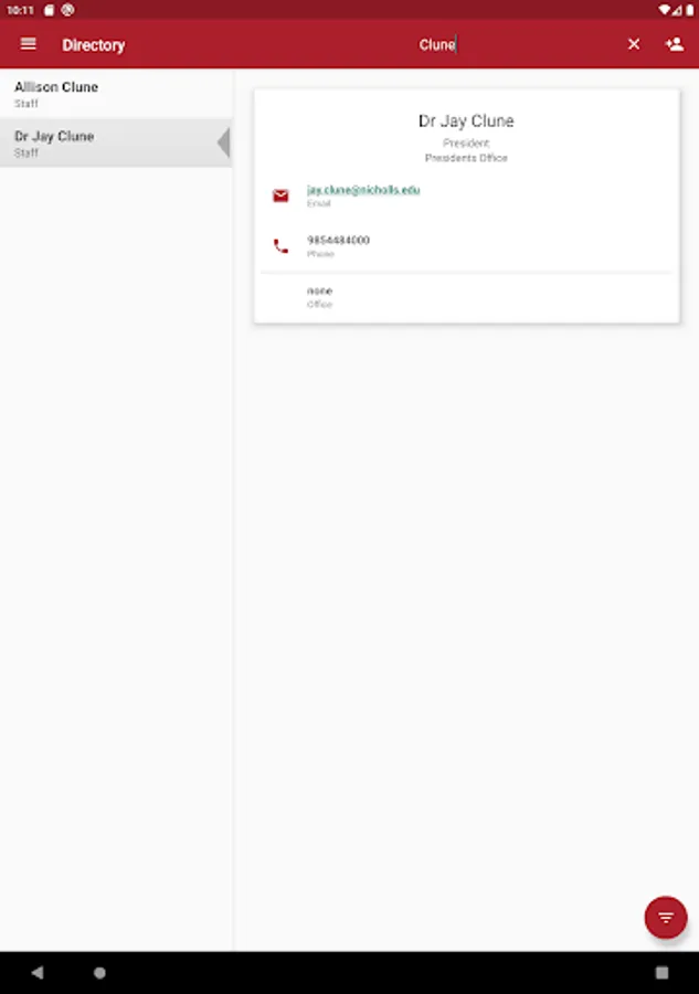 • Directory—Find the faculty, staff, or student you need and call them right from the app