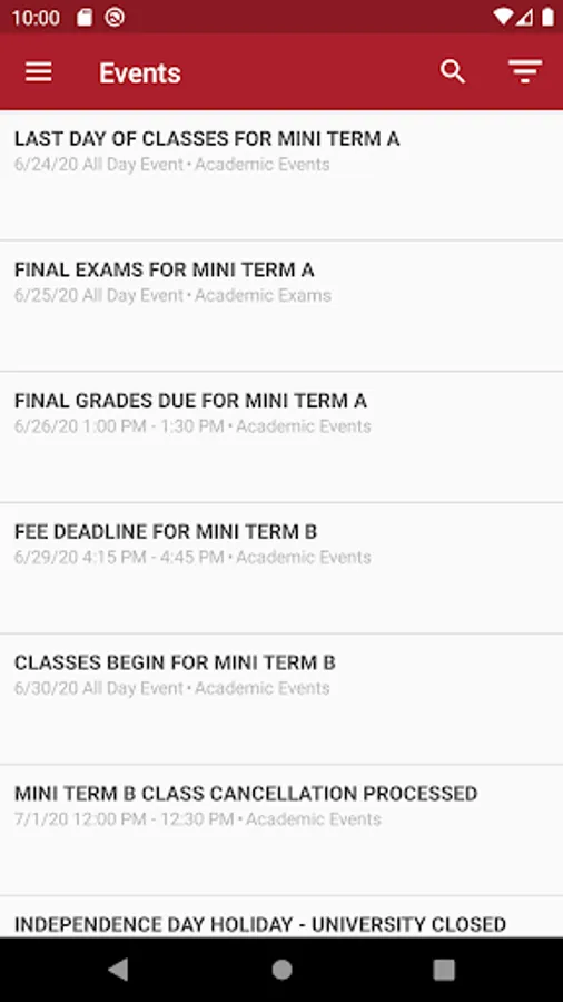 • Courses—Manage your courses on the go by accessing your course schedule and links to helpful resources.