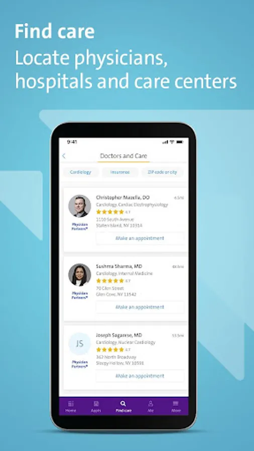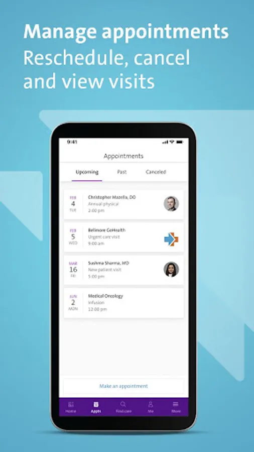 Use our Northwell Health App to easily schedule and manage appointments—as well as pay bills, find doctors, access medical records and get directions. Simply download the app and create an account to get started.