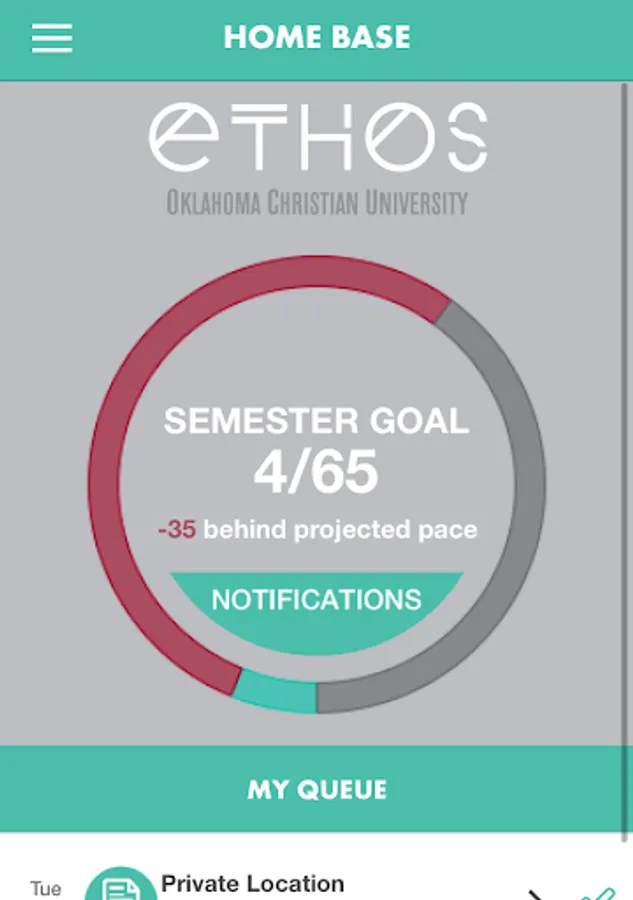 Ethos is Oklahoma Christian's competent for Spiritual Life. It allows students to view their semester progress in the Ethos program, view events, check in (where applicable), mark upcoming events they wish to attend, and make comments on the events they check in to.