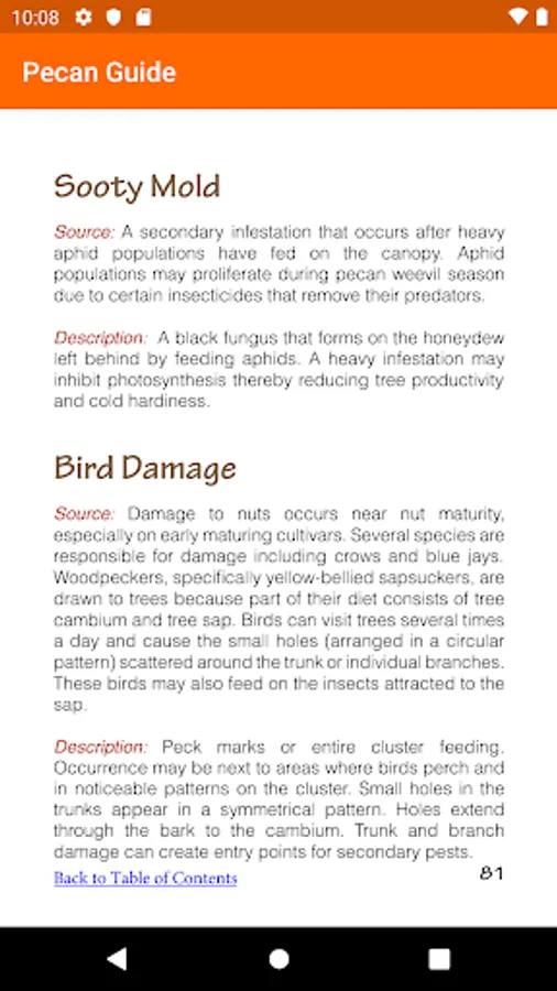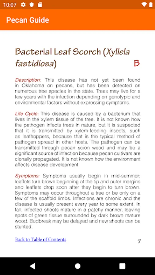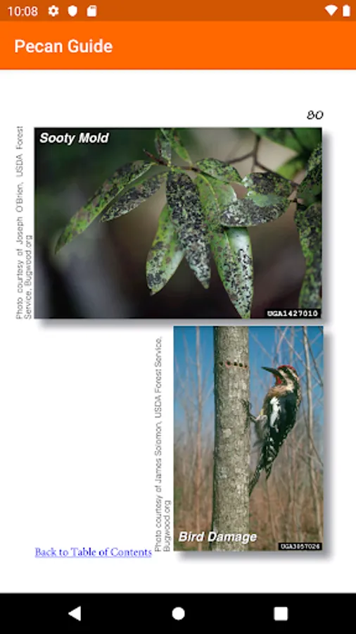 may also exist but are infrequent or isolated in occurrence. It is important for pecan producers to scout their orchards or groves frequently and observe disease and insect problems. Early identification can reduce negative impacts on tree health and productivity. More information and recommendations for management and control of these pests can be found at: http://www.hortla.okstate.edu/pecan/index.htm and