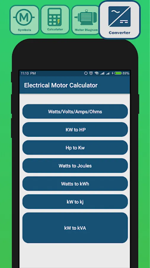 Electrical motor rewinding app is a Electrical Motor Wiring Diagram how to wire or repair an electric motor , calculate, wiring diagram and convert unite Watts / Volts / Amps / Ohms Ohm law calculator , KW TO HP, (horsepower )hp to kw, Watts to joules , Watts to kWh ,kW to kj, kW to kVA