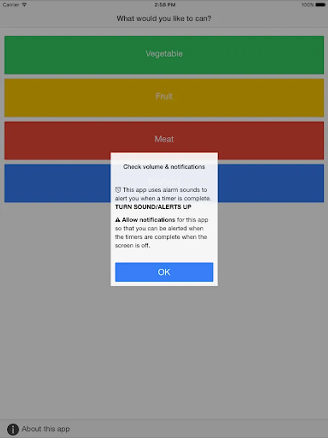 Select from over 40 popular foods used in home canning—including vegetables, fruits, meats, and fish—to generate a checklist and timer for processing. This app lets set you set your jar size, pack type, canning method, and elevation. It also reminds you of the steps necessary to prepare jars and canning pots. The timer is based on the specific information you enter. Designed for people with previous canning experience.