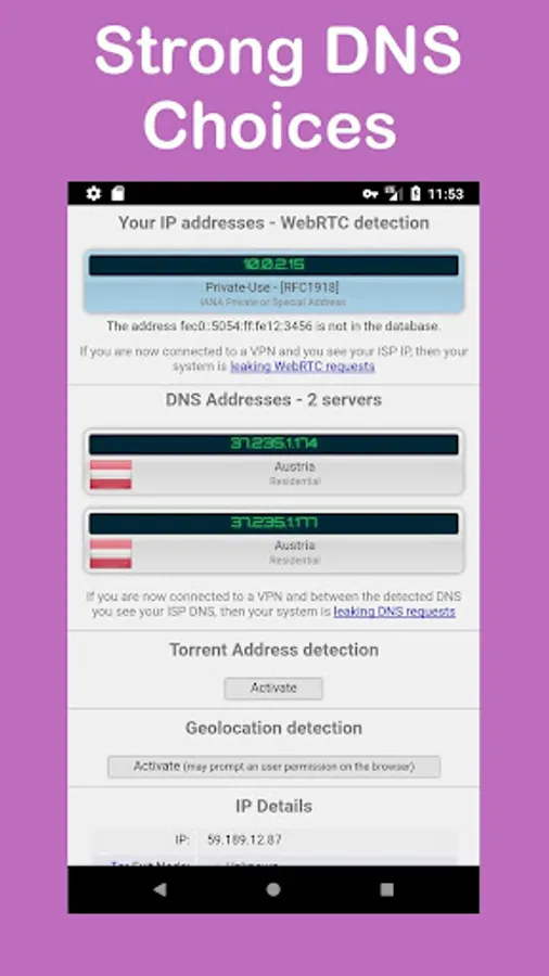 - Leak tests (ipleak.net)