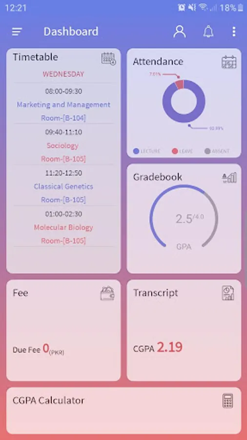 It also makes great use of Push Notifications like inviting students to social events, workshops, recruitment drives and more. To remind the students about their upcoming classes, the students can set an alarm too.