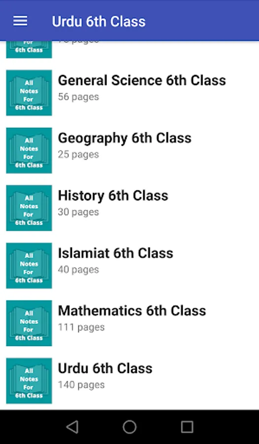 This is an educational app in which you get all notes of each subject for 6th class are available. The course included in the app is completely according to Federal Board but the students or teachers who are affiliated with other educational boards like Punjab, KPK, Baluchistan etc. can also avail. Subjects included in the app are given below.