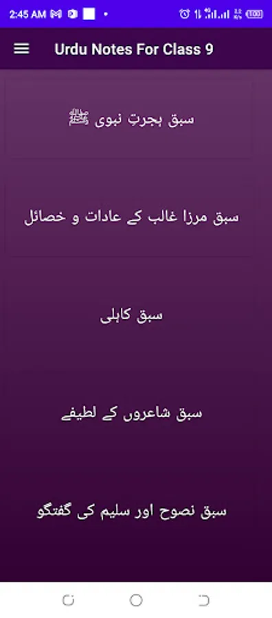 In this app, you will get Urdu guide book for class 9th. Mostly students prefer notes for the preparation of their exams. That is why, this key book has notes for all chapters and the interface of this app is very easy to use. You can read these notes online as well as offline.