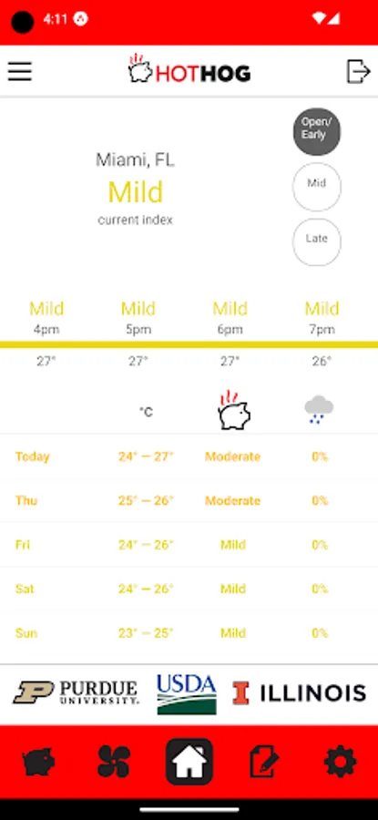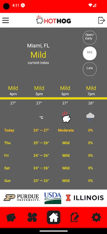 HotHog provides hourly and daily predictions of thermal comfort and stress in non-pregnant, mid-gestation, and late-gestation sows based upon a decision support tool developed through a USDA National Institute of Food and Agriculture grant by scientists with the USDA Agricultural Research Service, the University of Illinois, and Purdue University. Specific HotHog features are: