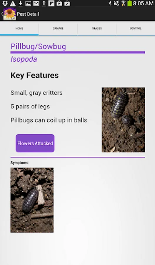 * Identify flower problems by matching damaged plant parts to over 600 high-resolution photos.