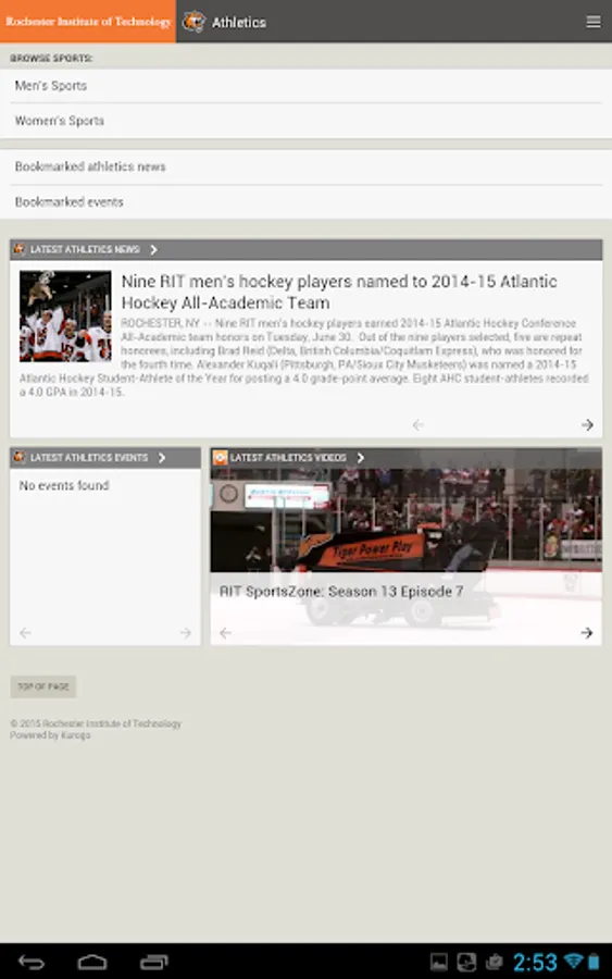 •RIT Athletics news, and schedules for individual Men's and Women's sports