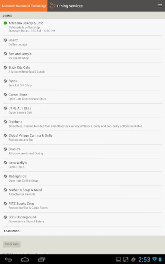 •Open/Closed RIT dining locations with menus, hours and days of service