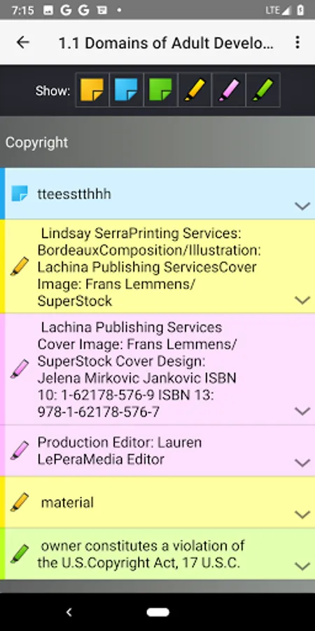 Use the Notes feature to rewrite concepts as you process them, or to cross-reference different components of your course material. Organize your notes with different color options so that you can categorize them according to your study preferences.