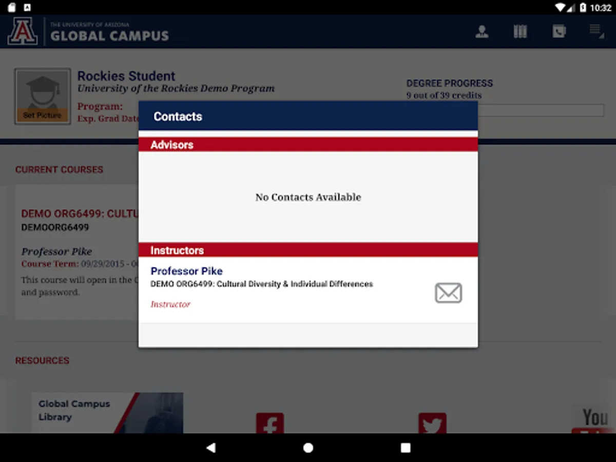 The official app for University of Rockies students. Receive announcements and alerts, read University news, contact your advisors, and much more. Download it now!