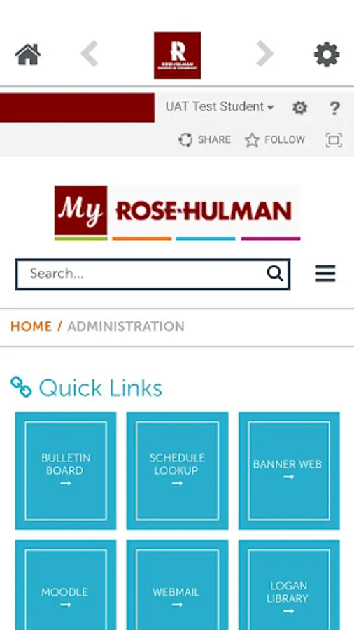 With the Rose-Hulman app, faculty, staff and students with active Rose-Hulman credentials only need to authenticate once upon downloading the app. After the initial login process, users will be able to access all internal news, events and resources without being prompted to log in continuously. As the Rose- Hulman campus information-sharing process includes sending emails with links to internal information, the My Rose-Hulman environment allows users to share customized links so content opens only in the app and not in a browser. This will ensure a unified experience for all users, regardless of their mobile and/or tablet device browser settings.