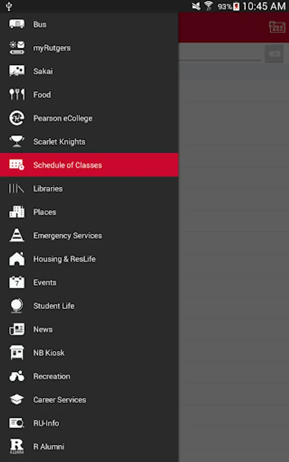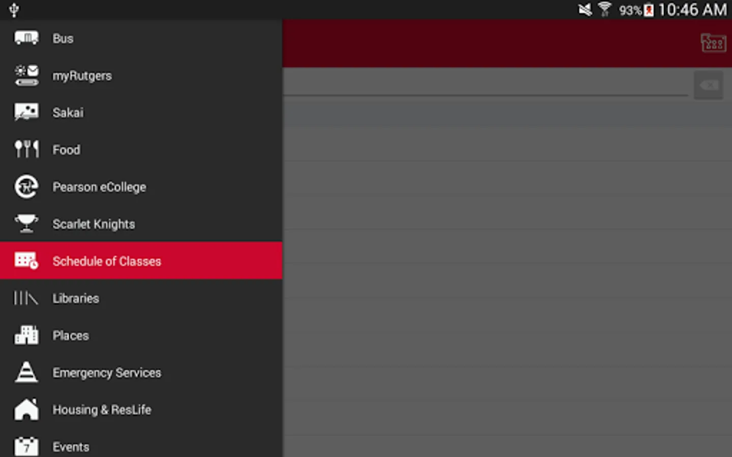 Stay connected with the Rutgers mobile application, available for Android. Access the University on the go: check campus bus times, dining hall menus, myRutgers, Scarlet Knights schedules and scores, and more. Find your way to class with Places and visit Rutgers mobile web sites that work great whether you're on cellular or RUWireless.