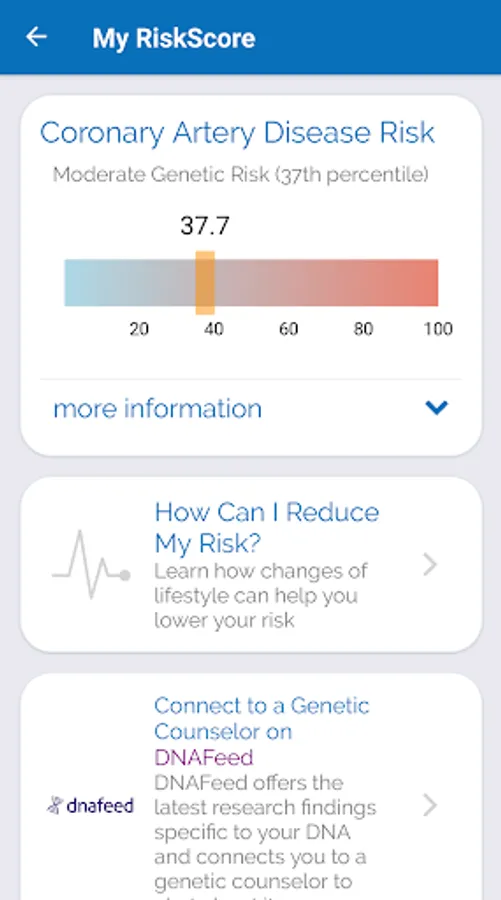 The goal of MyGeneRank is to determine how your genetic risk influences health decisions and other things that can be controlled in life. Our first genetic risk score is calculated for coronary artery disease (CAD).