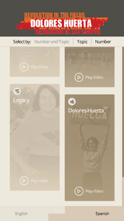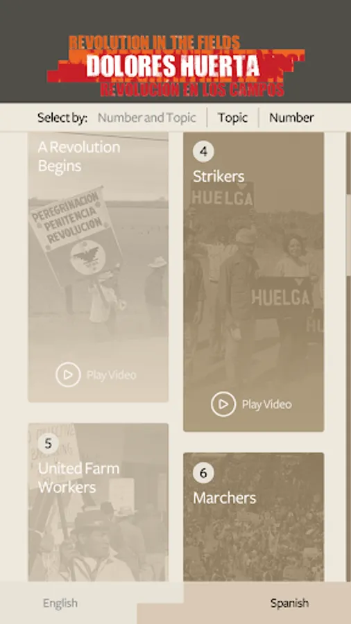 This bilingual mobile tour accompanies the Smithsonian traveling exhibition Dolores Huerta: Revolution in the Fields/Revolución en los Campos. It features 16 videos of Dolores Huerta discussing her lifetime of fighting for the rights of farm workers. Together with fellow United Farm Workers leader César Chávez, organizing marches, boycotts, strikes and more, Dolores Huerta played a critical role in the farm workers movement of the ‘60s and ‘70s. It is a quintessentially American tale of struggle and sacrifice, of courage and victory.
