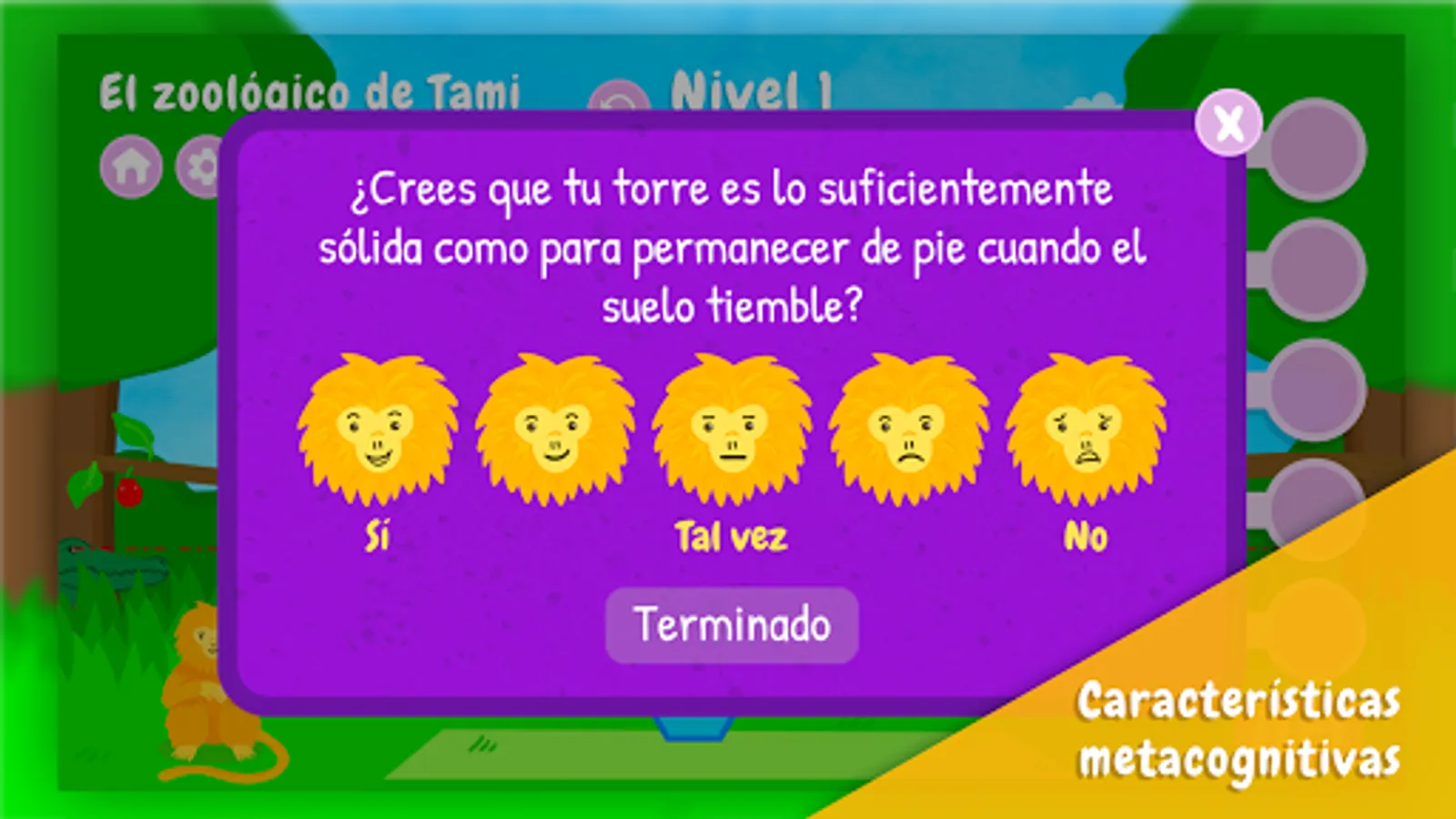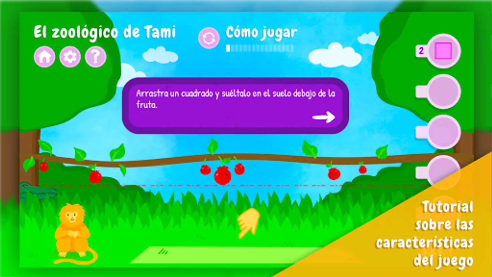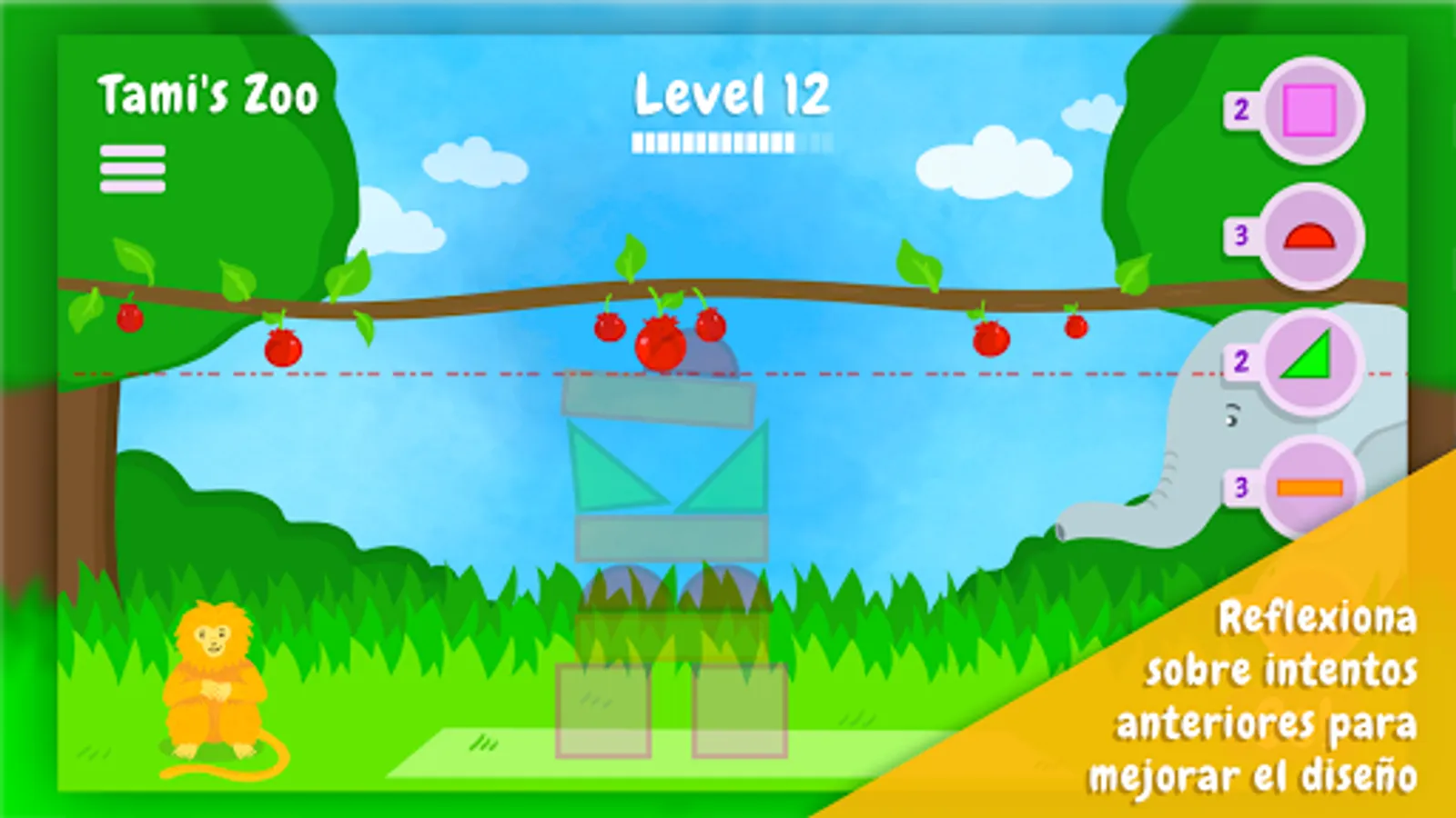¡Es la hora del almuerzo y Tami, la tití león de cabeza dorada, tiene hambre! Ayuda a Tami a alcanzar la deliciosa fruta construyendo una torre. ¡Pero cuidado! Otros animales pueden hacer que la torre de Tami se derrumbe.
