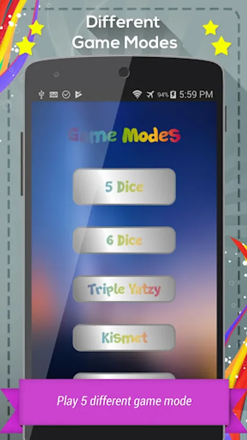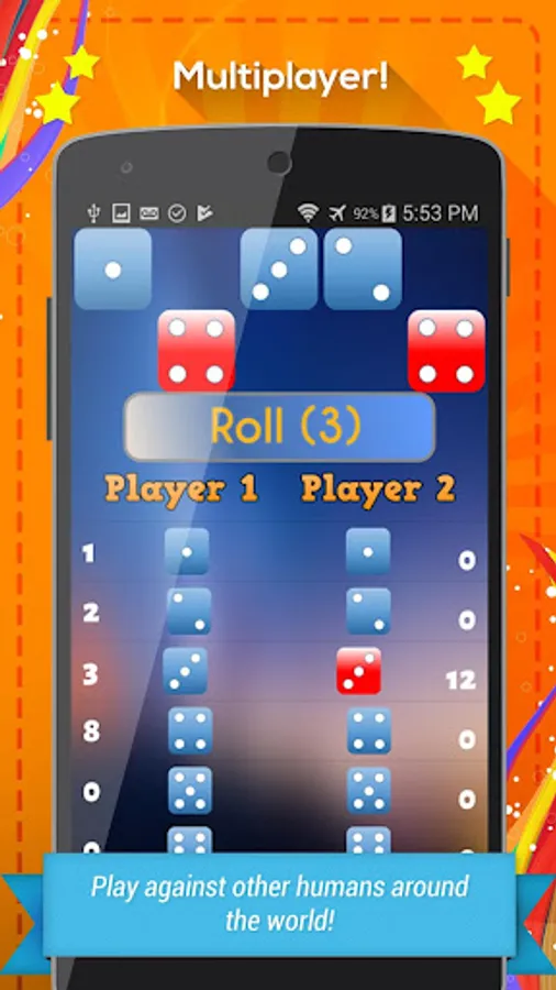 There are two types of game modes in Yatzy, Single Player and Multiplayer. In Multiplayer mode, you play normal five dice game, but instead of AI, you play against a real human player. To win, you must have higher score than your opponent. Remember that this is not just another game of chance. You must use strategy to win.