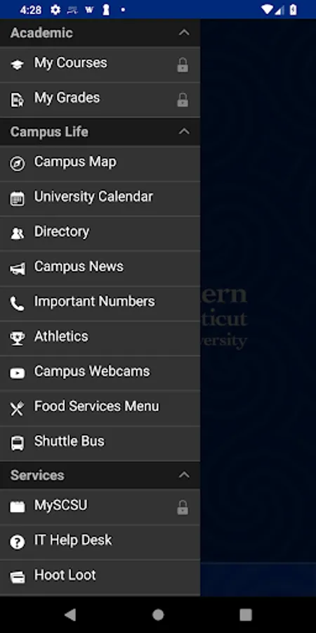 The official mobile app for Southern Connecticut State University puts many popular services at your fingertips. Use the app to view your current course schedule, navigate around campus using the map, check the webcams, review daily menu options, and more!
