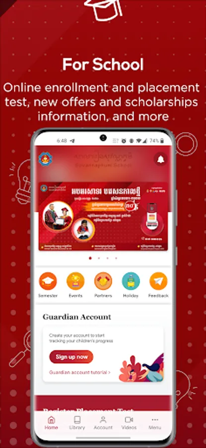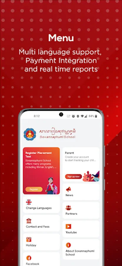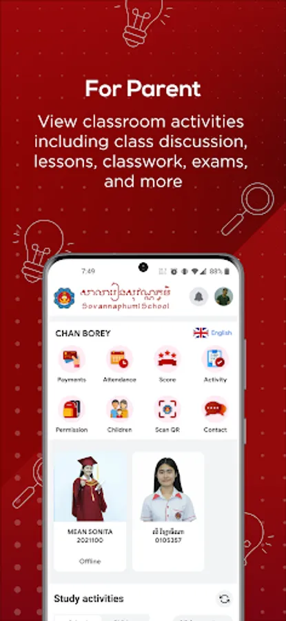 The Sovannaphumi School App provides a convenient online platform for teacher and student interaction and communication, student assessment, learning resources center, and learning progress tracking for teachers, students, and parents.