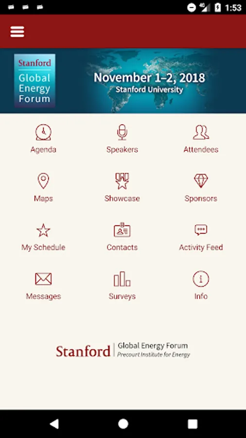 This is the official app for the Stanford Energy Global Event. See the general session schedule, speaker info, locations, ask questions live during presentations and more! This native downloadable conference app is available for free to conference attendees for Android devices. Code: Stanford Energy Global Event, Stanford GEF, Stanford Energy Forum, Stanford Energy Event