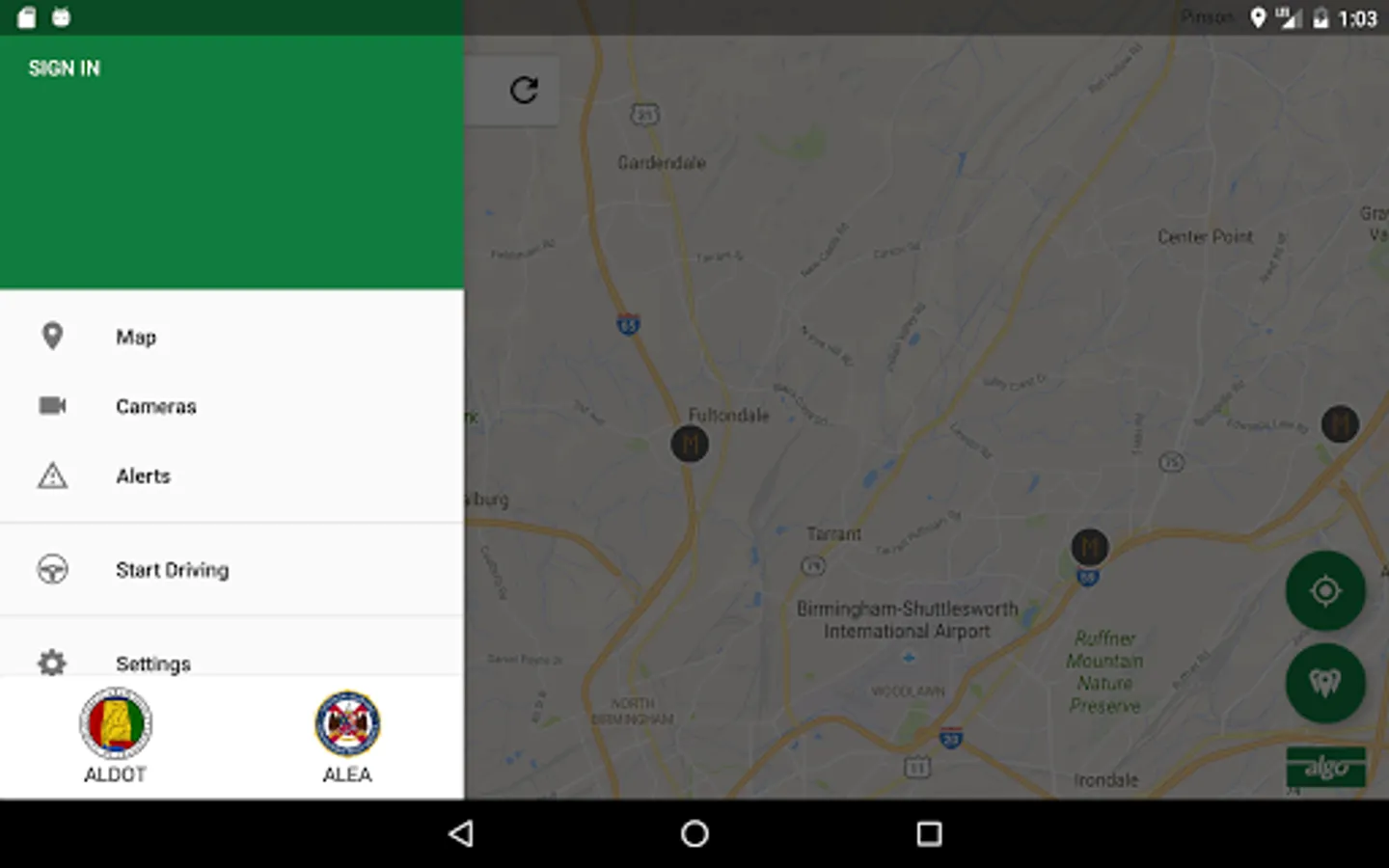 Sponsored by the Alabama Department of Transportation (ALDOT) and the Alabama Law Enforcement Agency (ALEA). Do not use this application while driving.
