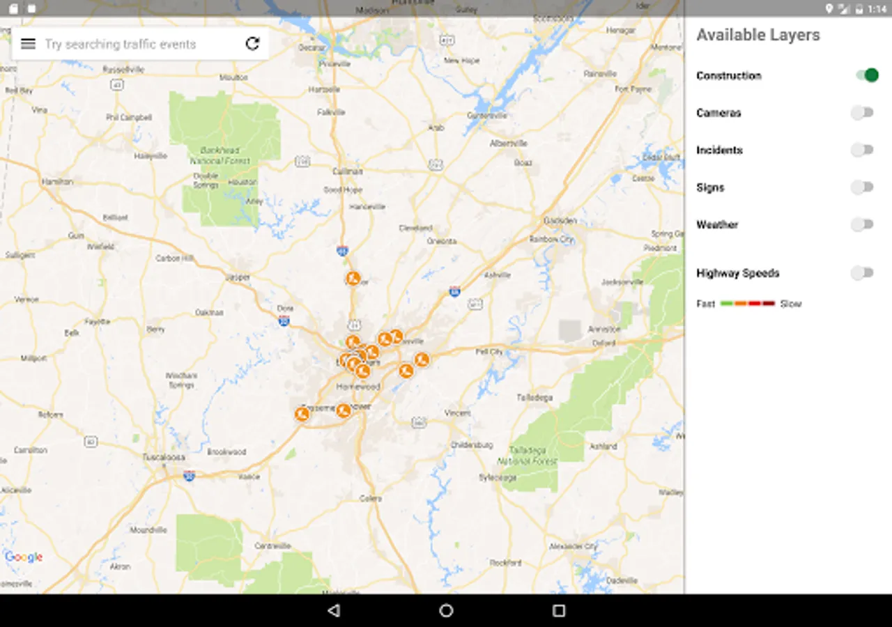 ALGO Traffic provides live traffic camera feeds, updates on Alabama roads, and access to exclusive ALDOT information such as message sign readouts, incident and construction information, and current road congestion levels.
