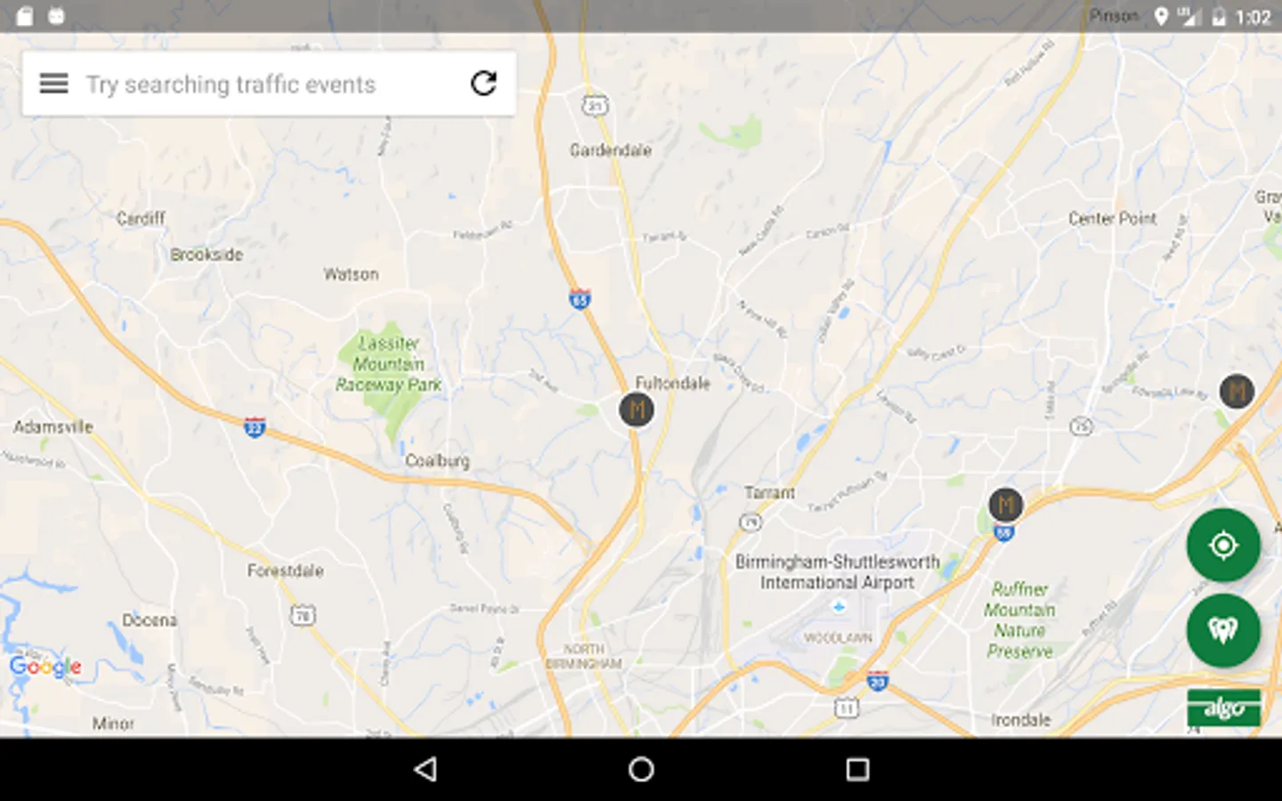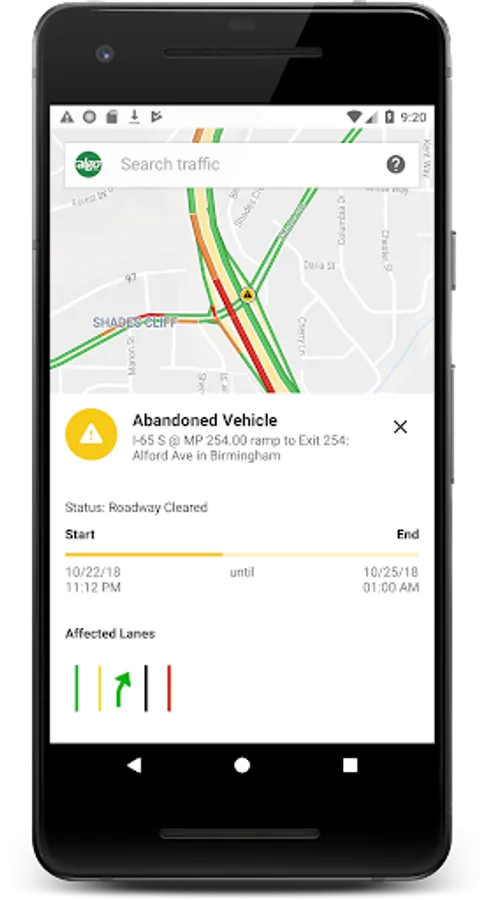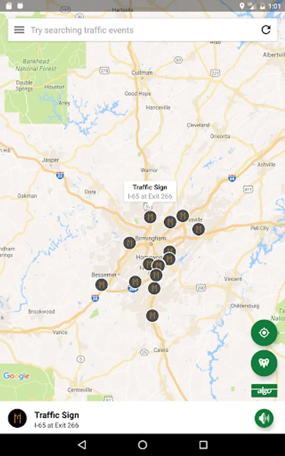 Create a profile on algotraffic.com to customize your default map settings, or check interstate traffic by viewing our live camera feeds. Learn more about active alerts for the state, or use driving mode to be notified of upcoming events on your route. Currently supporting Birmingham, Huntsville, Mobile, Montgomery, and Tuscaloosa regions.
