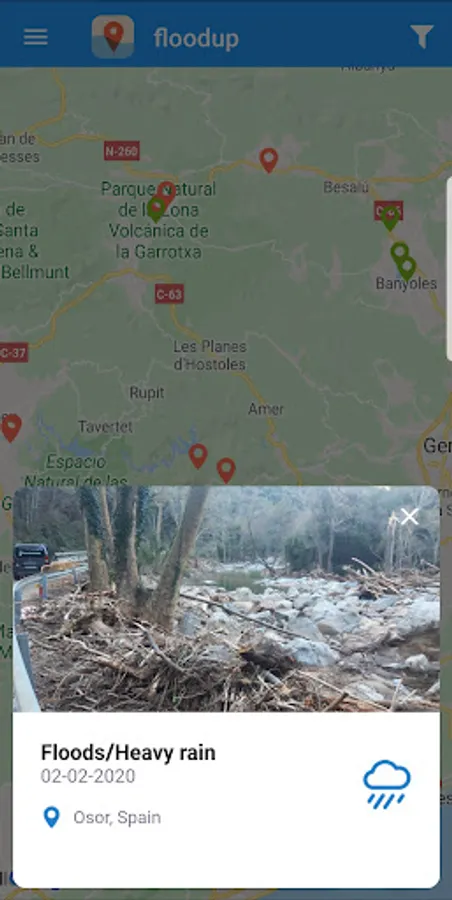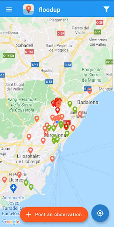 FLOODUP is an application developed by the Meteorological Hazards Analysis Team (GAMA) of the Department of Applied Physics of the University of Barcelona with the support from the EU-H2020 project I-CHANGE (grant agreement n. 101037193) and PIRAGUA (Interreg V-A