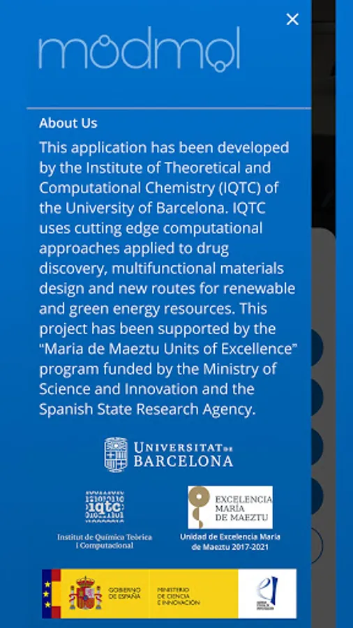 MODMOL is an application developed by the Institute of Theoretical and Computational Chemistry of the University of Barcelona and the company Visyon360. This application forms part of the UB mobility project.