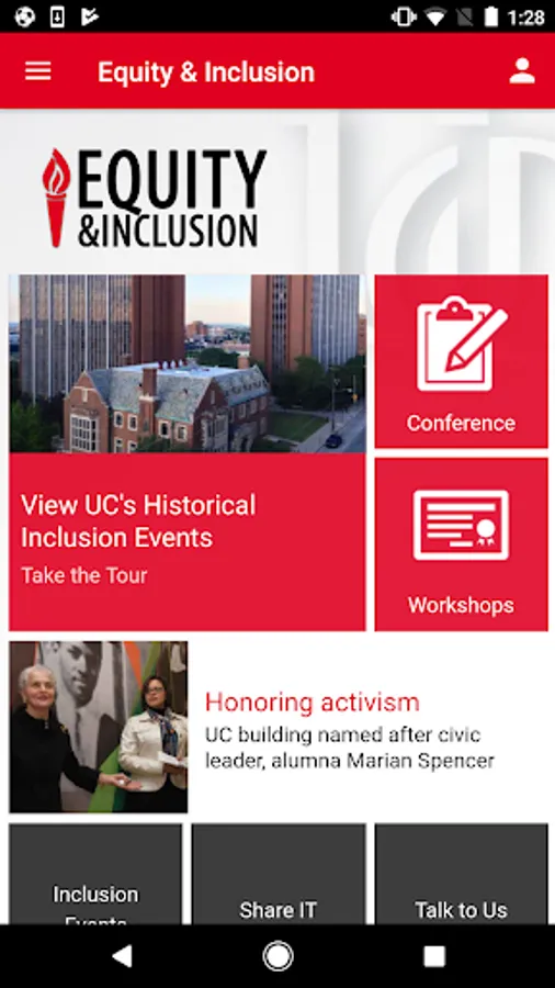 The University of Cincinnati embraces equity and inclusion as a core value that empower individuals to transform their lives and achieve their highest potential. The UC Inclusion app allow the UC Community to: