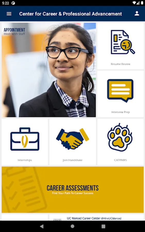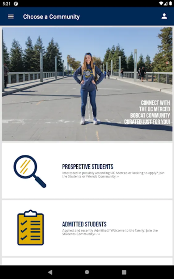 The official UC Merced app brings the university to your fingertips. Stay connected to upcoming events, safety information, and resources you need every day. Organize and expand your connection to campus life with a few clicks or taps.