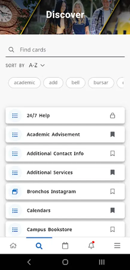 • Campus Map – The building information tab allows users to see a photo and brief description of each building. The building search function also allows users to locate buildings, which can be a big help during that busy first week of class!