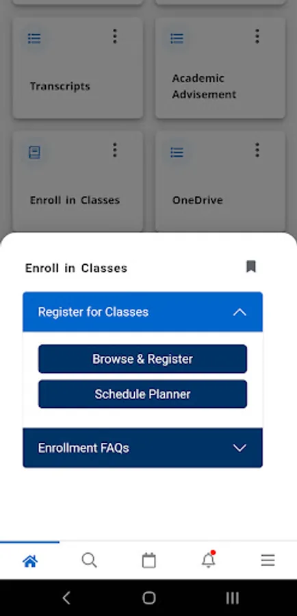 • Courses – Not sure where you need to be today? Use this feature to check your daily schedule.