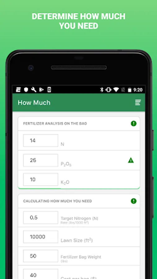 Built in calculators help you determine how much fertilizer will be needed to properly fertilize turfgrass areas, streamline calibration calculations, calculate the amount of nitrogen, phosphate and potash that will be applied to their area based on the fertilizer selected.