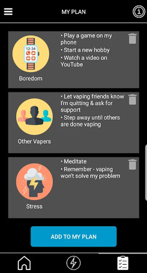 - Knowing your triggers and having a plan to deal with them will help you quit. My Plan shares strategies that have worked for others. Doing these help you deal with those times when you really want to vape.