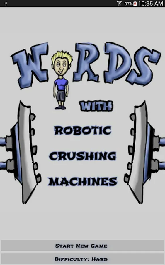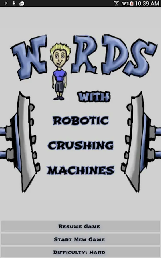 In Words with Robotic Crushing Machines the player is given a word to guess in the classic hangman style. The twist is instead of the man being hanged, he is being crushed by a robotic crushing machine!