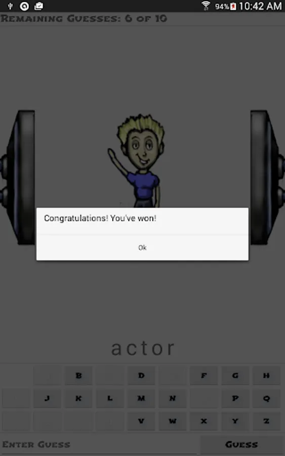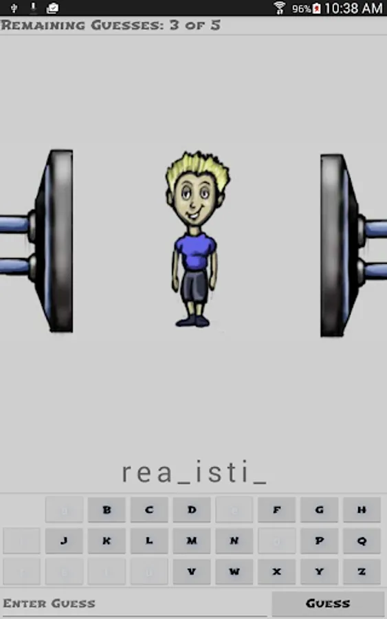 There are three difficulties, easy, medium, and hard. The more difficult the game, the more difficult the word and the less wrong guesses allowed.