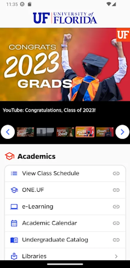 The official mobile app of the University of Florida, designed to enhance the experience of students, faculty, staff, alumni, and friends of The Gator Nation. The app will help you navigate campus, stay updated on the latest news and events, and easily access a wide range of UF resources. Go Gators!