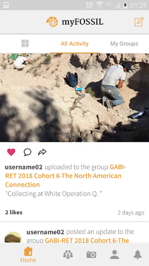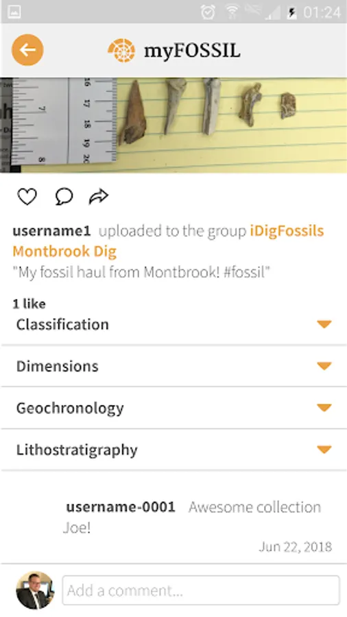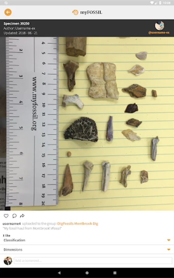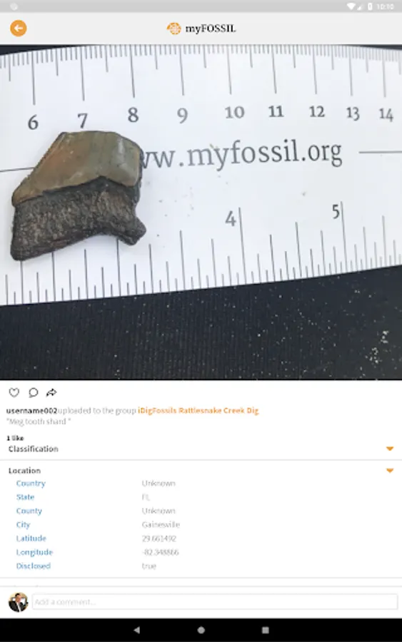 Emphasizing citizens as scientists, the myFOSSIL mobile app helps users engage with the practice of paleontology, connect with others who share their interests, and collaborate on fossil field trips, research, and more. Users follow groups focused around a topic, event, or location. They then connect with group members by sharing photos and updates about their paleontological activities. Group members may include any of the nearly 1,000 amateur and professional paleontologists currently in the myfossil.org community. Directly from the field, users can upload fossil images to the myFOSSIL gallery to compare and discuss their finds and techniques. By adding in details about location, taxonomy, and geology, these fossil images become scientific records accessible to researchers and educators worldwide. Beyond specimens, users can also document and share paleontological methods, events, collecting sites, and more! Designed to facilitate a visually rich form of social learning, the myFOSSIL mobile app allows users to become part of the larger social paleontology community.