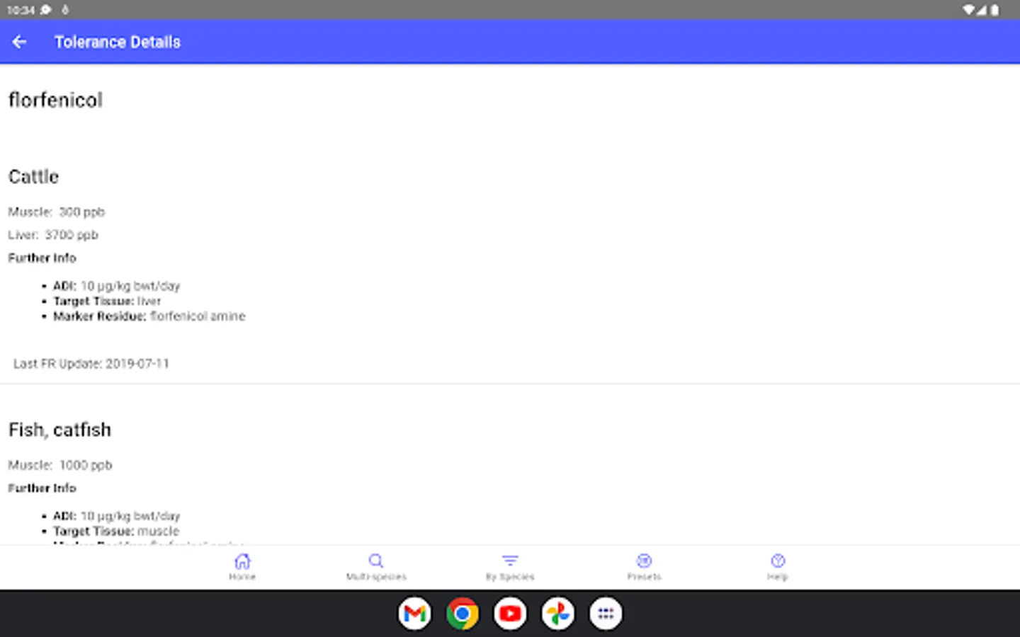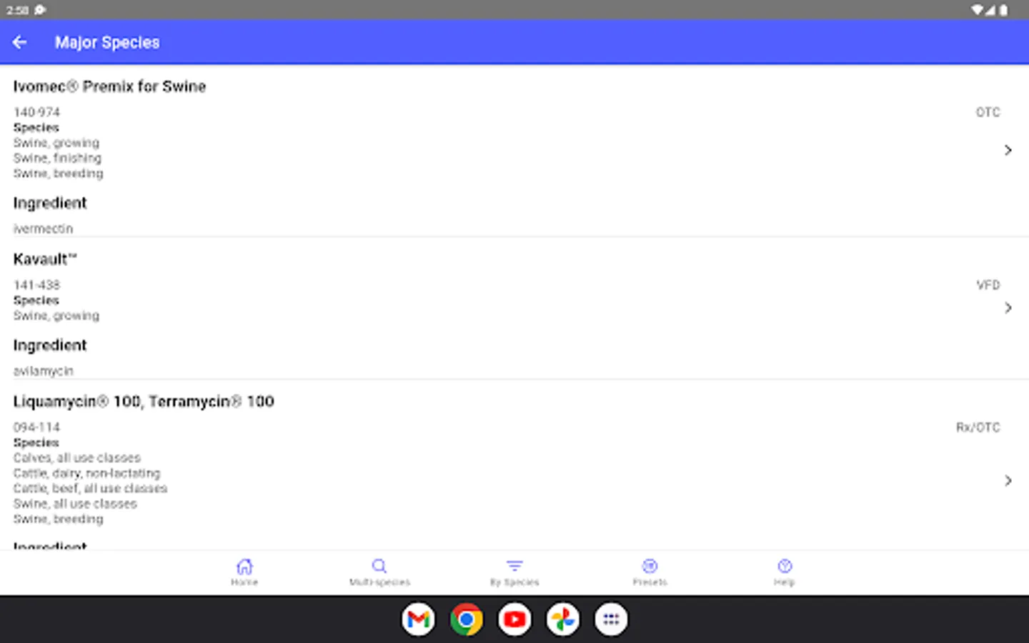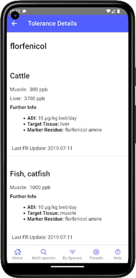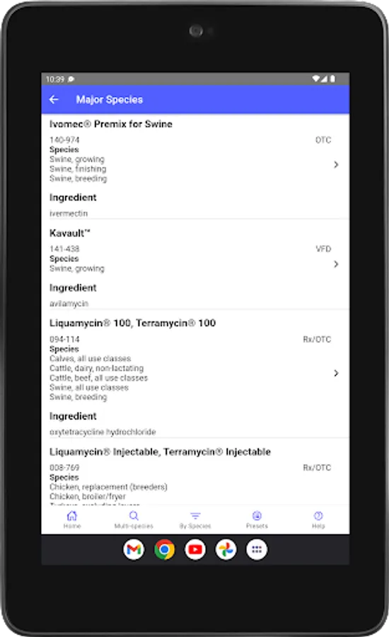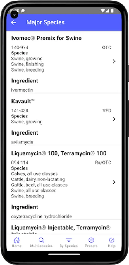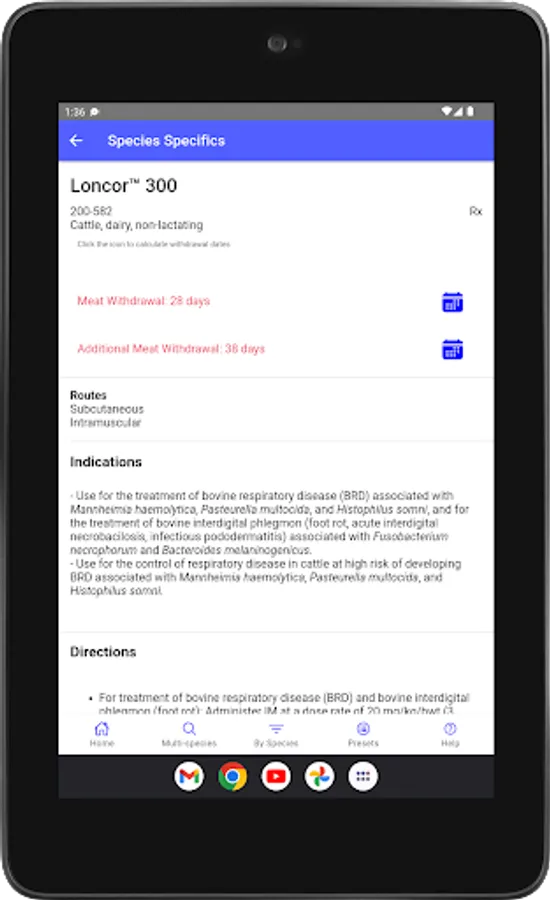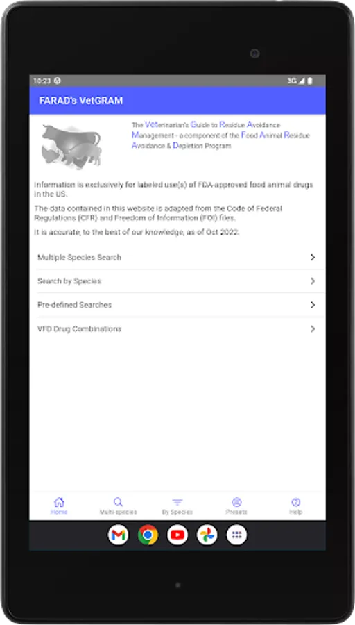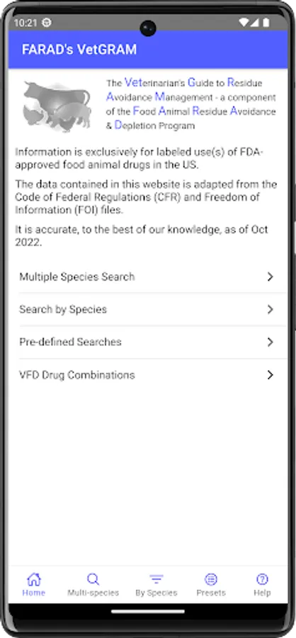 This mobile version was developed at the University of Florida, Gainesville, Florida, USA. It is based on information found in VetGRAM (http://www.farad.org/vetgram), which is one of the information resources provided by the Food Animal Residue Avoidance Databank.