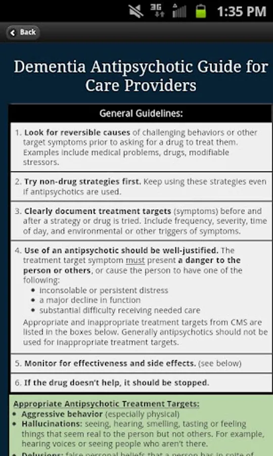 Quick clinical reference guides on managing problem behaviors and psychosis in dementia. Provides information on non-drug management, delirium screening, medication review, and appropriate antipsychotic use and monitoring. Product of an AHRQ funded grant, Improving Antipsychotic Appropriateness in Dementia Patients. Developed by University of Iowa investigators, the Iowa Geriatric Education Center, Health Literacy Iowa, and PMC Studios, with the assistance of many health care providers who reviewed the content.