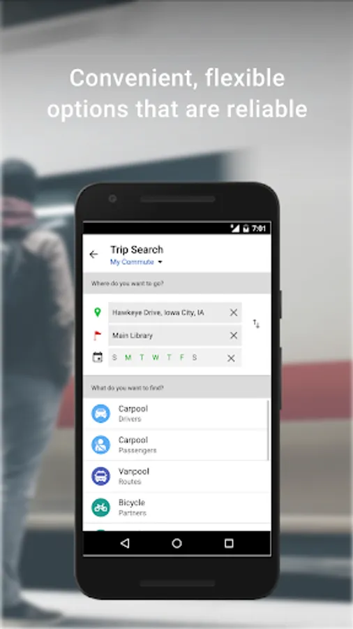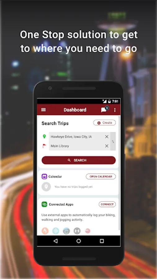 UI Rideshare Network is an easy way to search options for getting to and from the University of Iowa campus. Students and employees can find carpool partners, employee van pools, and bus routes. You can also find biking and walking routes.
