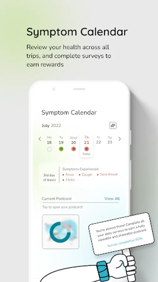 Travel Healthy is an app developed by travel medicine specialists at Massachusetts General Hospital, in collaboration with infectious disease researchers at the University of Massachusetts Chan Medical School. You can use this app to keep track of symptoms that you may experience during an international trip. As a user of this app, you will be participating in a research study at Massachusetts General Hospital titled: “A Mobile Application for Collecting Symptom and Geographic Data from U.S. International Travelers”. Beyond this, Travel Healthy also offers a suite of tools to help you during your trip, including a Travel Wallet where you can securely store documents such as a vaccine card, itinerary, list of prescriptions, etc. All the data in Travel Healthy is encrypted on the phone and the cloud database using industry-grade algorithms. Finally, as you complete symptom surveys during your trip, you will get unique digital postcards that you can collect and share with family and friends!