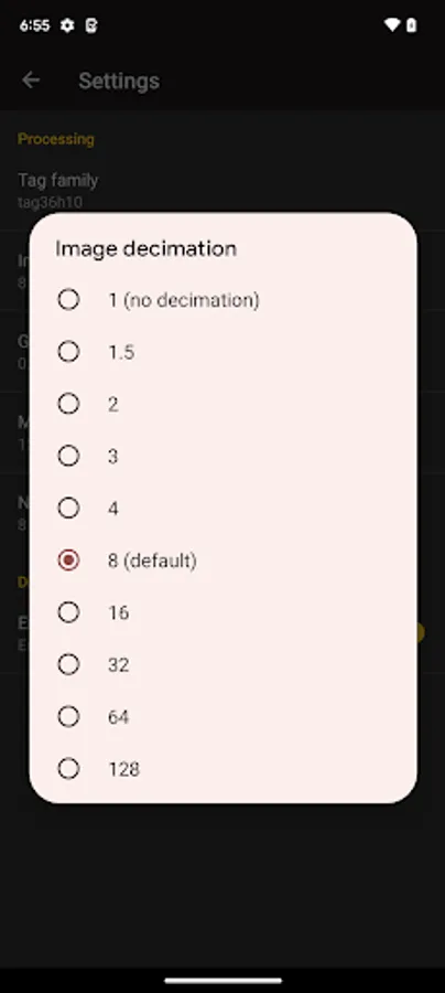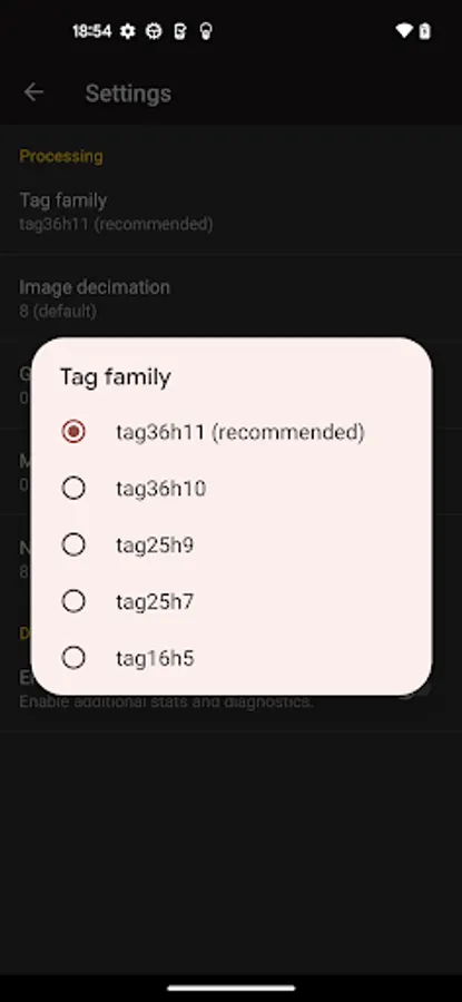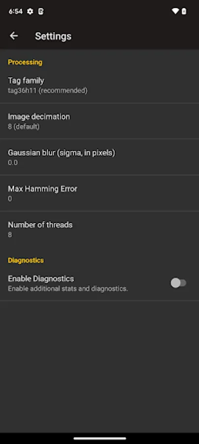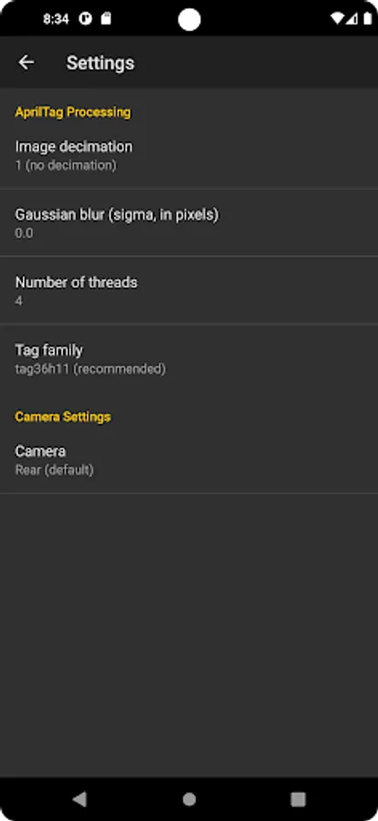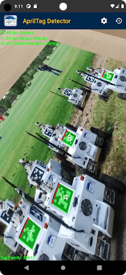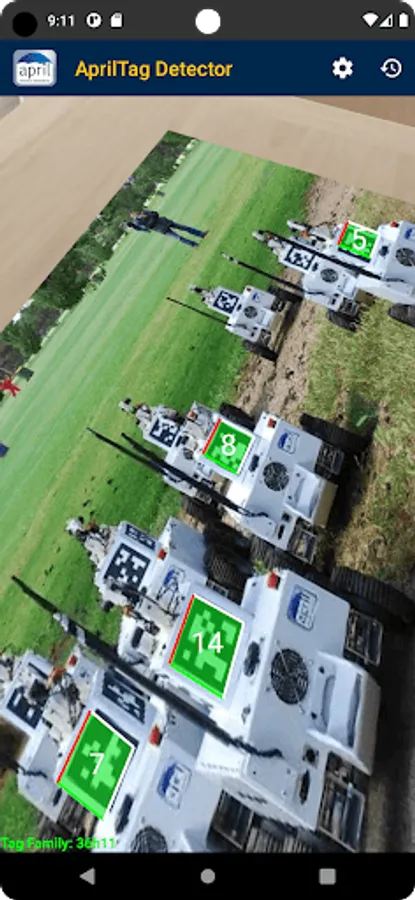 This app provides core apriltag detection functionality directly from APRIL Robotics Lab alumni. Supports all apriltag2 tag families. Tunable settings for decimation, hamming error, etc available. Detected valid tags will be outlined in the preview window.