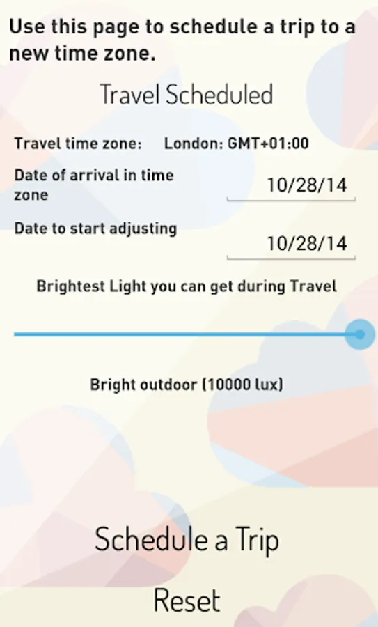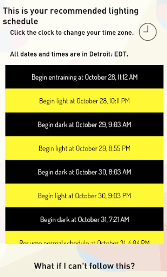 Jetlag is the result of a disrupted circadian clock. Entrain simulates your circadian clock on the phone and makes mathematically optimal lighting recommendations to help you adjust as fast as possible to new timezones and schedules. The recommendations, which tell you when to seek light and/or dark, are based on new research in the journal PLoS Computational Biology. Learn more at entrain.org.