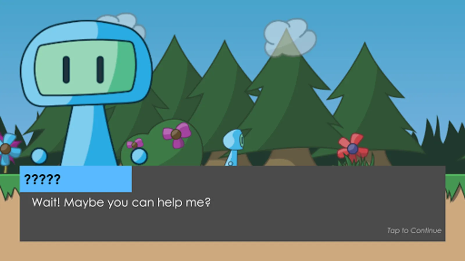 In the game, you will meet ToM (Theory of Mind), the robot. ToM is a friendly character that loves helping his robot friends through different challenges in the forest. His goal is to use his understanding of facial expressions in figuring out how to help his friends with the challenges they might have in social situations. Although ToM is not an expert in faces, nor an expert in problem solving, you can help him to learn what is the actual emotional state of his friends and how he can act accordingly.